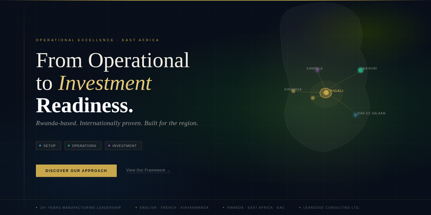 Founded in 2025 by Olivier Condo, LeanEdge was built on a straightforward observation: Rwanda's manufacturers have the ambition and the workforce to compete — but most are operating well below their productive potential due to process instability and limited internal operational capability. The tools to fix this exist. What was missing was a firm that could deliver them with genuine local understanding and world-class technical depth.